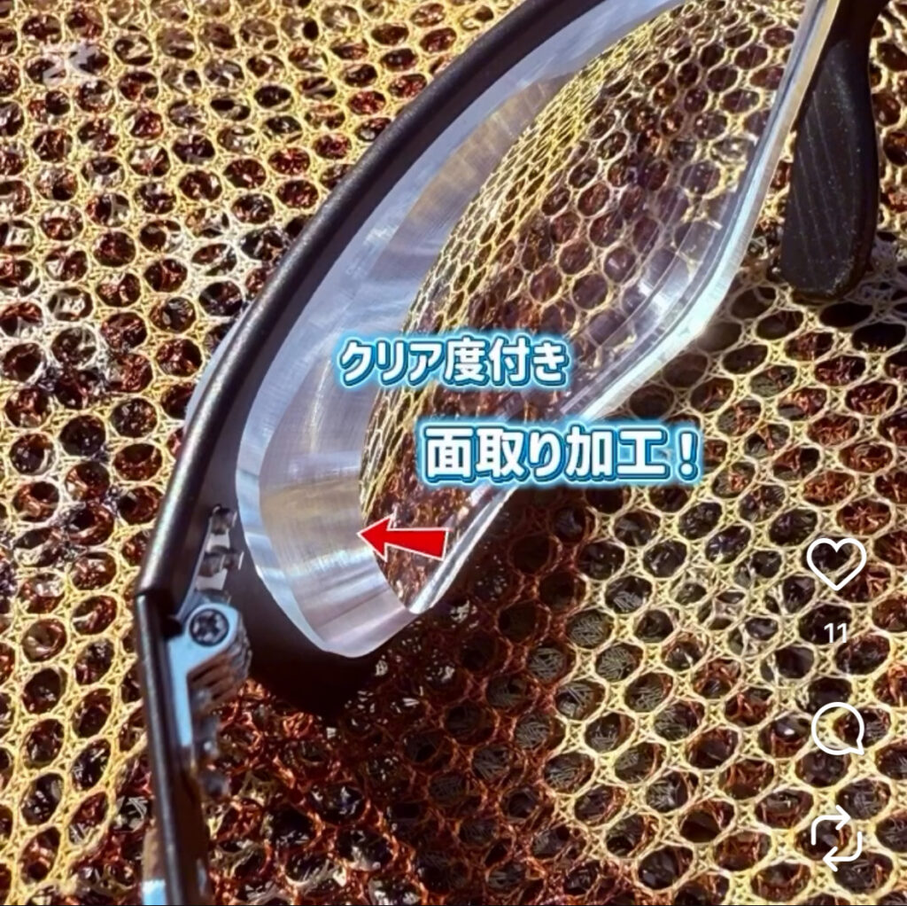 メガネのやましたでは、分厚くなったレンズの箇所に独自の削りこみを入れ